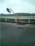 台風の影響で傾いちゃったガードレール発見(苦笑)